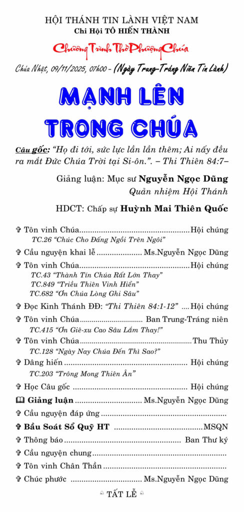 Trang chủ Tin tức Thờ Phượng Chúa Nhật 09-11-2025