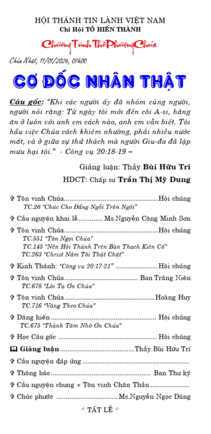 Chương Trình Kỷ Niệm Mừng Chúa Giáng Sinh 25-12-2025
