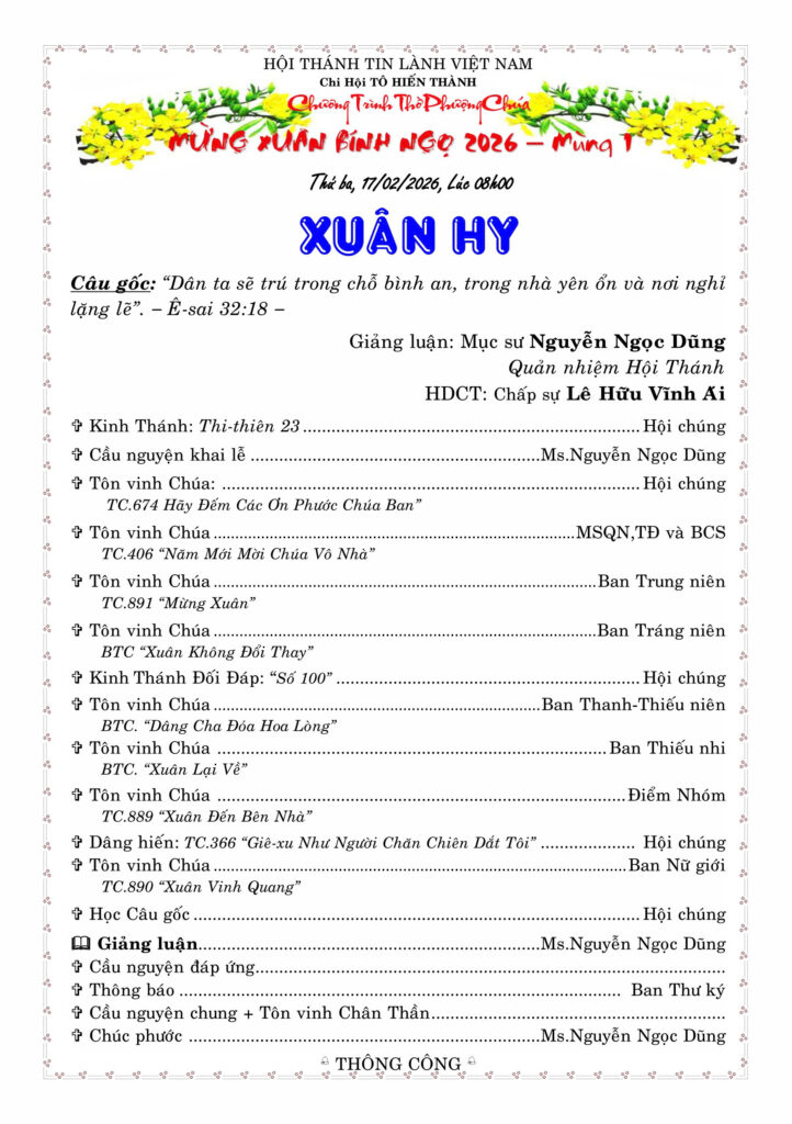 Thứ Ba – Sáng Mùng Một – Xuân Bính Ngọ – 17-02-2026