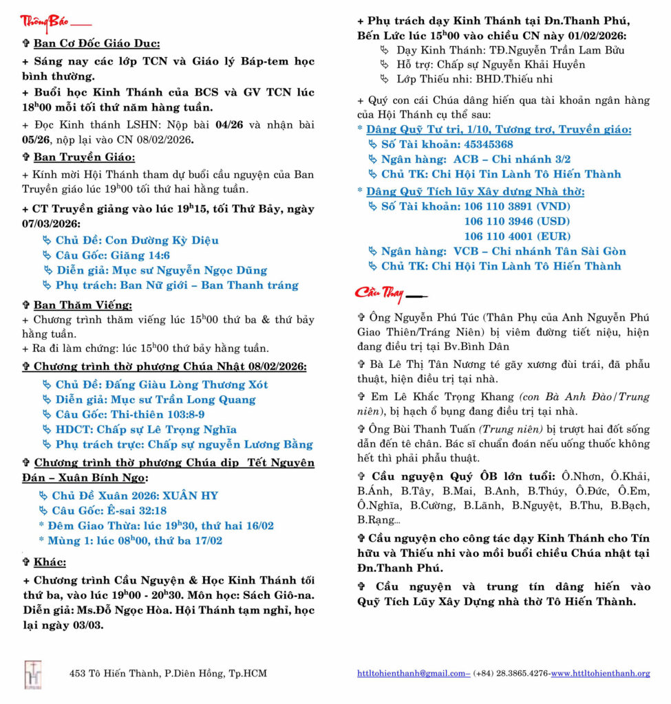 Trang chủ Tin tức Thông Báo Thông Báo Chúa Nhật 01-02-2026