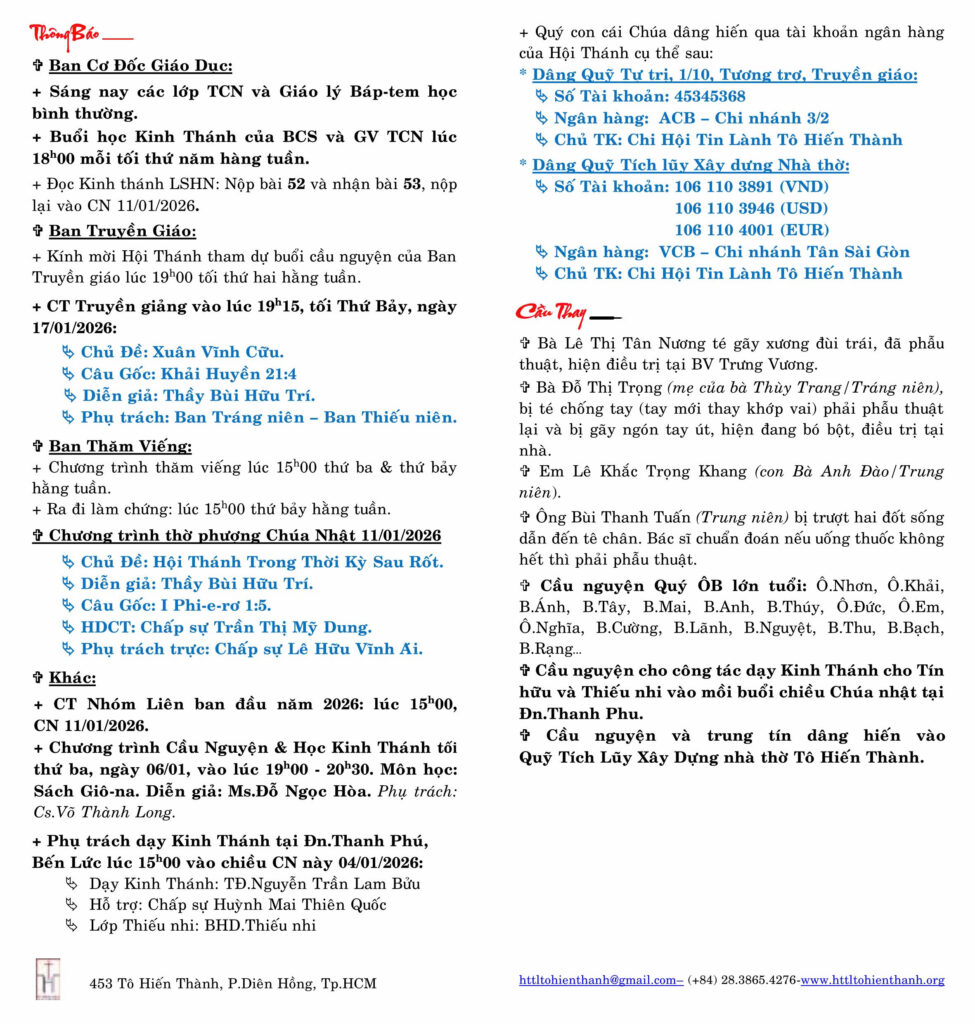 Thông Báo Chúa Nhật 04-01-2026