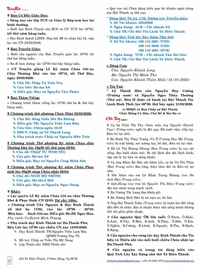 • Thông Báo Chúa Nhật 15-03-2026