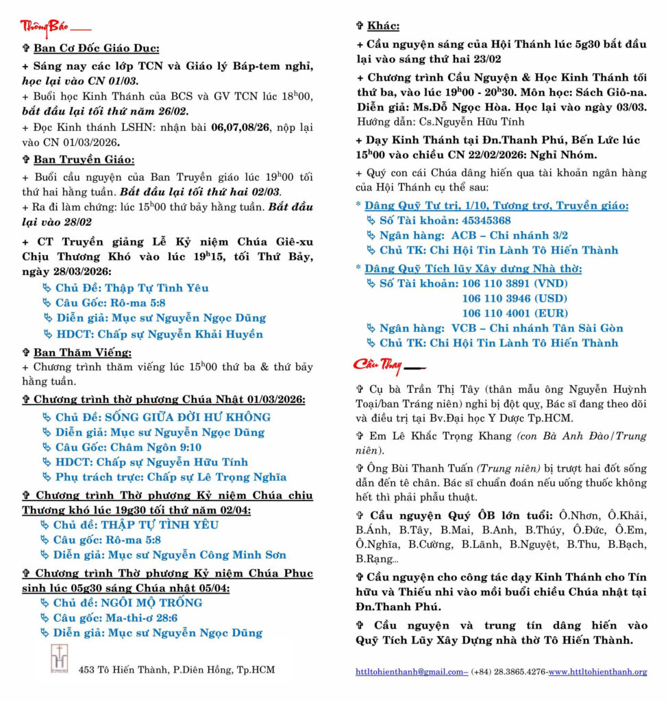 • Thông Báo Chúa Nhật 22-02-2026