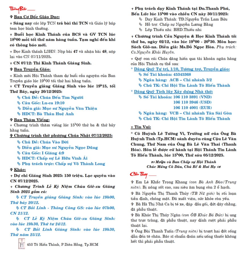 Trang chủ Tin tức Thông Báo Thông Báo Chúa nhật 30-11-2025